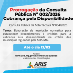 ARIS-MG prorroga prazo da Consulta Pública nº 002/2026 sobre cobrança pela disponibilidade