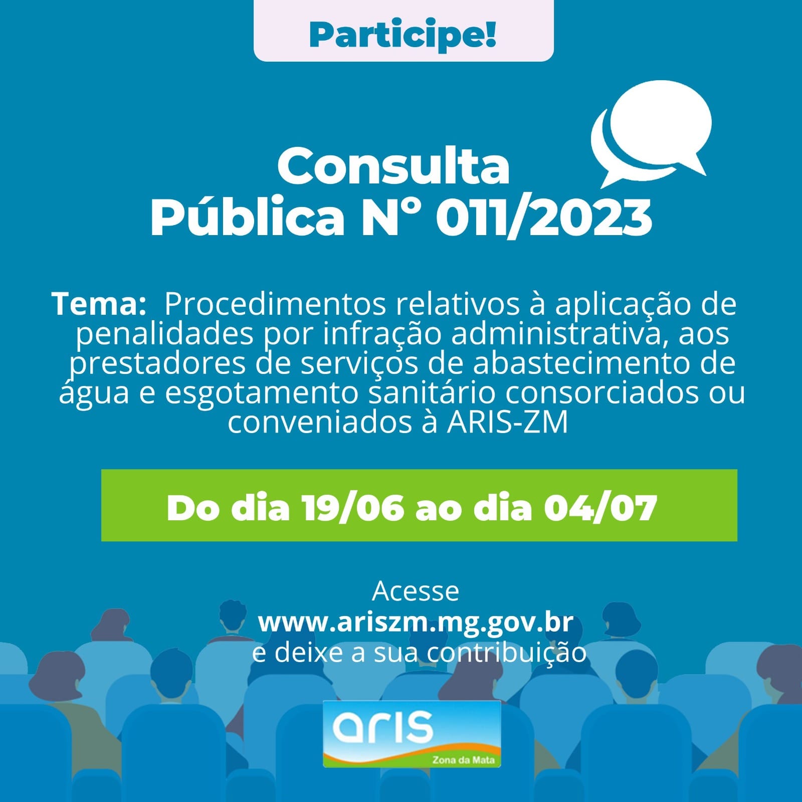 Está aberta a Consulta Pública sobre procedimentos relativos à aplicação de penalidades por infração administrativa, aos prestadores de serviços de abastecimento de água e esgotamento sanitário consorciados ou conveniados à ARIS-ZM. A participação de toda a comunidade é fundamental nesta etapa, pois a partir dela podemos interagir com cidadãos, prestadores de serviços e sociedade, contribuindo para […]