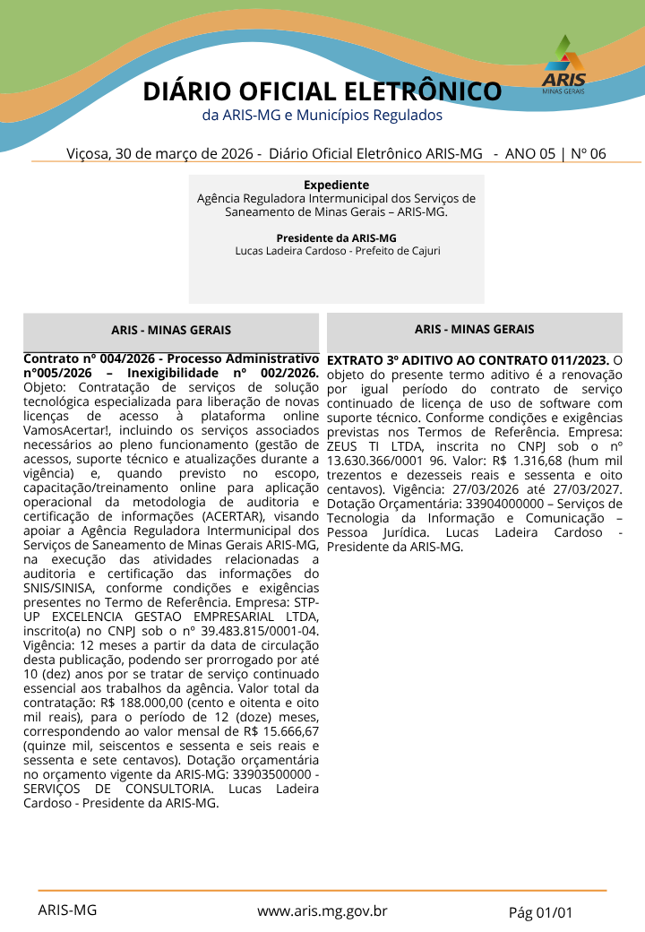 Diário Oficial Eletrônico ARIS-MG - ANO 04 | Nº30