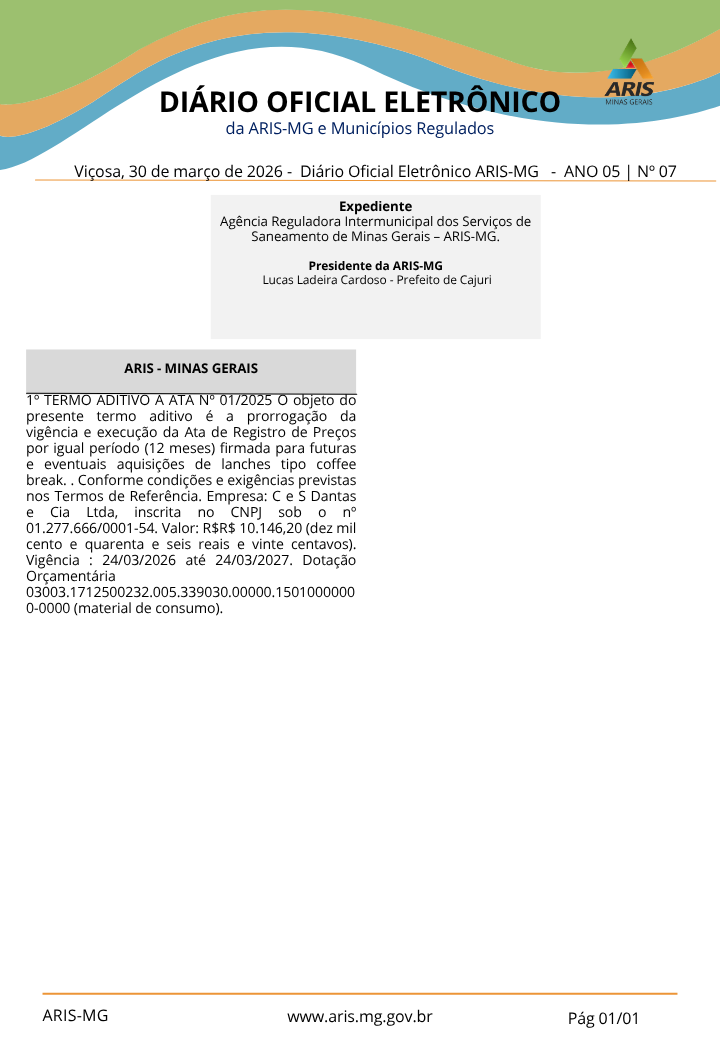 Diário Oficial Eletrônico ARIS-MG - ANO 05 | Nº07
