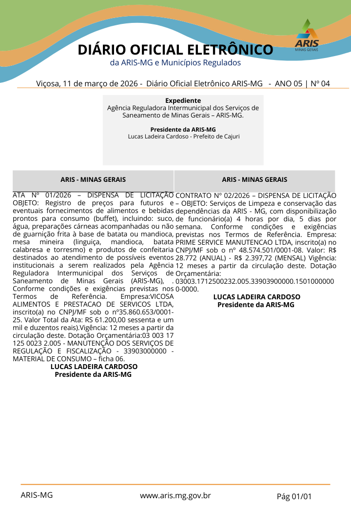 Diário Oficial Eletrônico ARIS-MG - ANO 05 | Nº04