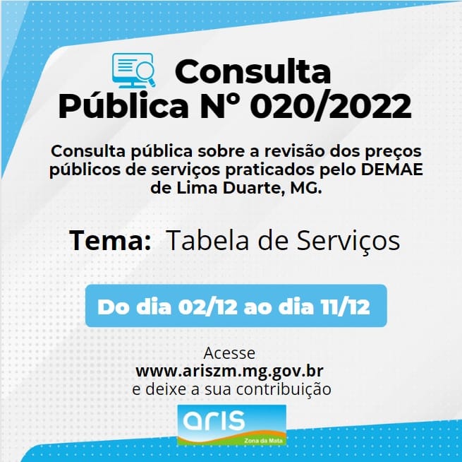 Consulta Pública sobre a revisão dos preços públicos de serviços praticados pelo DEMAE de Lima Duarte (MG)