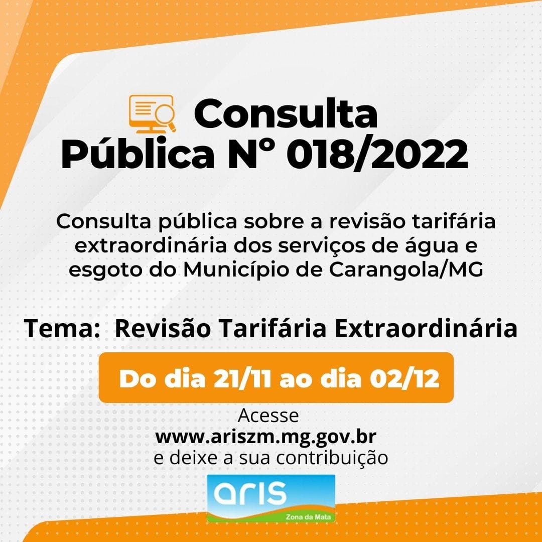Consulta Pública sobre a Revisão Tarifária Extraordinária do SEMASA de Carangola