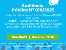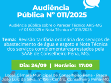 ARIS-MG realizará audiência pública na próxima quarta-feira para discutir a revisão tarifária do SAAE de Recreio