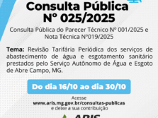 Consulta Pública 025/2025 – Reajuste das Tarifas SAAE Abre Campo