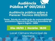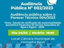 Audiência Pública acontece em Vermelho Novo no dia 04 para tratar sobre o estudo econômico do SAAE e consulta pública é aberta para tratar do mesmo assunto
