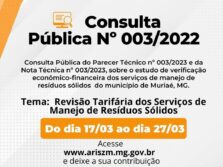 ARIS-ZM abre consulta pública sobre revisão tarifária de resíduos sólidos em Muriaé