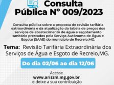 Está aberta Consulta Pública sobre reajuste tarifário e atualização de tabela de preços no SAAE de Recreio!