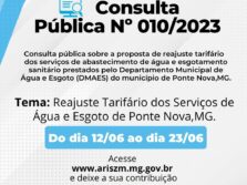 Está aberta Consulta Pública sobre reajuste tarifário do DMAES de Ponte Nova!